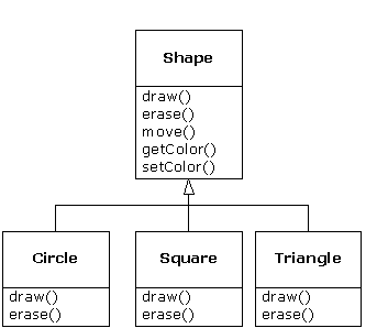 Notice that it doesn’t say “If you’re a Circle, do this, if you’re a Square, do that, etc.” If you write that kind of code, which checks for all the possible types that a Shape can actually be, it’s messy and you need to change it every time you add a new kind of Shape. Here, you just say “You’re a shape, I know you can erase( ) and draw( ) yourself, do it, and take care of the details correctly.”